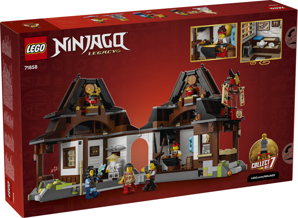 15-jähriges Jubiläum der Vier-Waffen-Schmiede (71858) ist ein Spielset, das Ninja-Fans ab 14 Jahren zum ersten Mal den allerersten Schauplatz aus der Pilotfolge der LEGO® NINJAGO® TV-Serie bauen lässt
