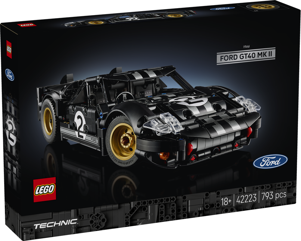 Der LEGO® Technic 1966 Ford GT40 MKII Rennwagen (42223) ist das Modell einer Ikone des Motorsports, mit dem erwachsene Fans gerne noch einmal die einstigen Siege feiern werden. Autoliebhaber, Motorsportfans und begeisterte Baufans ab 18 Jahren können mit diesem wirklichkeitsgetreuen Modell des beliebten Rennautos noch einmal den Geist eines legendären Langstreckenrennens heraufbeschwören.