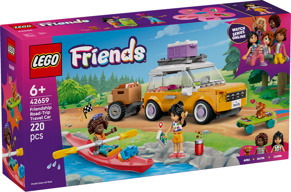 Der LEGO® Friends Abenteuertrip mit Freunden (42659) ist ein Bauset, das Mädchen und Jungen ab 6 Jahren unzählige Abenteuer erleben lässt. Ein Auto mit Anhänger, 2 LEGO Friends Spielfiguren, ein niedlicher Welpe und viele Zubehörelemente bieten jede Menge Spielspaß.