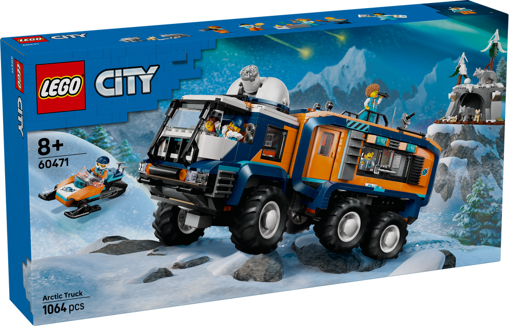 Überrasche einen jungen Abenteurer mit dem LEGO® City Arktis-Truck mit Labor (60471) für Fans von MINT-Spielzeug ab 8 Jahren. Dieses Spielset beinhaltet einen 6-rädrigen Spielzeug-Truck mit Knicklenkung, grobstolligen Reifen und drehbarer Sternwarte auf dem Dach. Zu den coolen Details im Inneren zählen die Fahrerkabine, das Labor und der gemütliche Wohnbereich mit Bad, Küche und Schlafzimmer. Auch ein Schneemobil, das Modell einer Höhle in der Arktis, 5 Polarforscher-Minifiguren, 2 Polarwölfe und 1 Polarwolfwelpe lassen Kinder fantasievoll spielen.