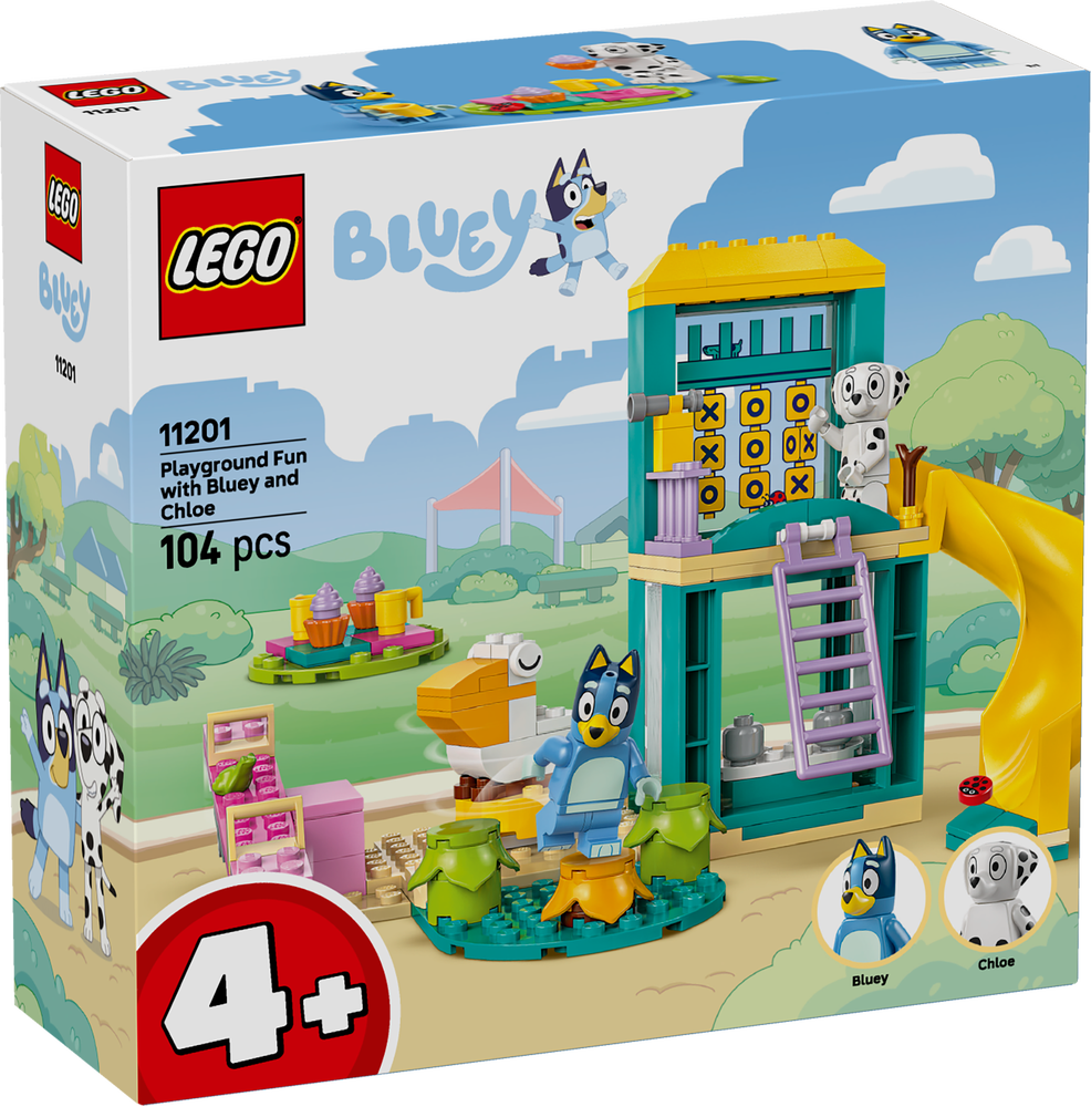 Bluey und Chloe auf dem Spielplatz (11201) ist ein Spielset für Fans der TV-Serie Bluey. Dieses Spielzeug bietet Vorschulkindern ab 4 Jahren unzählige kreative Spielmöglichkeiten. Beim Spielen entwickeln Kleinkinder Selbstvertrauen und lernen Probleme zu lösen.