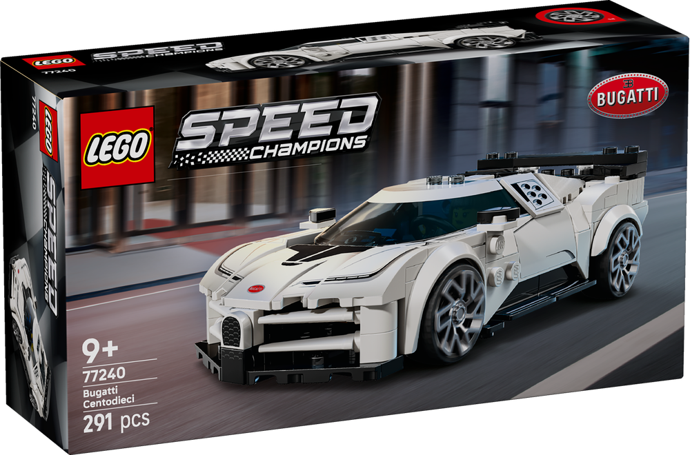 Kinder ab 9 Jahren können den LEGO® Speed Champions Bugatti Centodieci Hypersportwagen (77240) sammeln, bauen und ausstellen und in viele Rennen schicken. Das Auto wurde als Hommage an den Bugatti EB 110 entwickelt. Der imposante Spielzeugflitzer besitzt viele der berühmten Designdetails des echten Sportwagens.