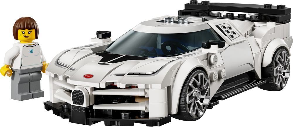 Das LEGO® Bugatti Modell verfügt unter anderem über die 5 runden Lufteinlässe an den Seiten, die einzigartigen Felgen, die Scheinwerfer, den hufeisenförmigen Kühlergrill, den überhängenden Heckflügel und die 4 Heckauspuffrohre des Centodieci Hypersportwagens. Außerdem beinhaltet das LEGO Set neben dem Auto auch einen Bugatti-Rennfahrer. Für spannende Rennen und Rollenspiele können Kinder die Minifigur ans Steuer setzen.