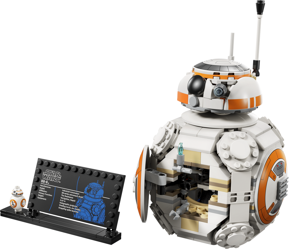 BB-8 ist in demselben Maßstab wie R2-D2™ (75379), C-3PO (75398) und andere Droiden aus LEGO® Steinen aus den separat erhältlichen LEGO Star Wars™ Sammelsets nachgebildet
