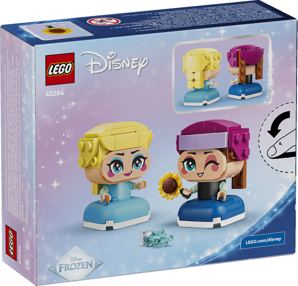 LEGO® ǀ Disney Frozen Die Mini-Prinzessinnen Anna und Elsa (43284) ist ein tolles Geschenk für Kinder ab 5 Jahren. Die kleinen Filmheldinnen Elsa und Anna laden Kinder zum Spielen und zu vielen Geschichten mit dem Eisblitz und der Sonnenblume ein. Beide Figuren können ein Zubehörteil in ihren beweglichen Armen halten. Die beiden Prinzessinnen sind auch süße Ausstellungsstücke und gehören zu einer größeren Sammelserie mit weiteren Disney Princess Heldinnen aus LEGO Steinen.