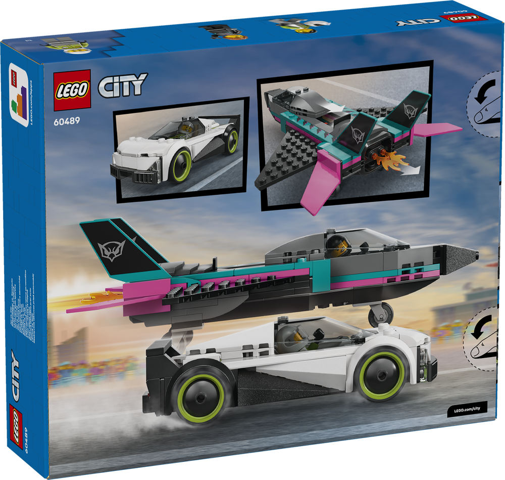 LEGO® City Düsenflieger vs. Rennauto (60489) ist ein Spielset, das Kinder ab 6 Jahren unzählige rasante Rennen austragen lässt
