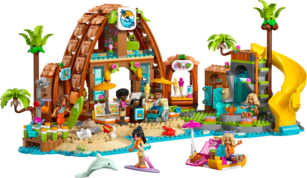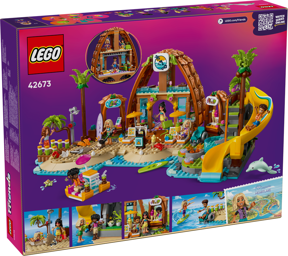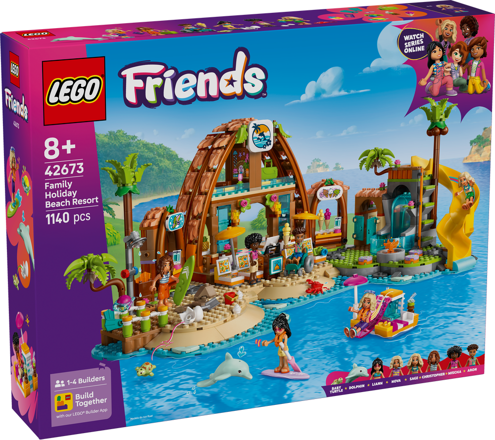 Dieses Bauset für Mädchen und Jungen ab 8 Jahren bietet Kindern jede Menge Spielspaß in der coolen Ferienanlage. LEGO® Friends Familienurlaub im Strandresort (42673) beinhaltet 6 LEGO Friends Spielfiguren, einen Delfin und eine Schildkröte sowie Zubehör, um Kinder kreativ spielen zu lassen.