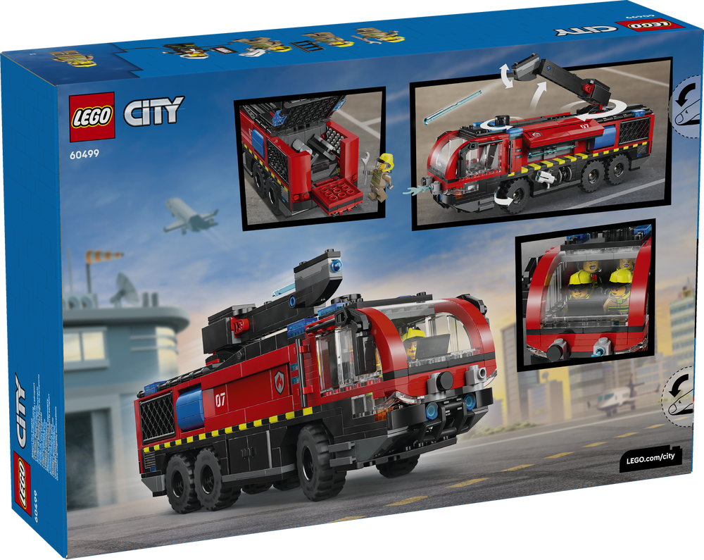 Begleite die Feuerwehrleute im LEGO® City Flughafenlöschfahrzeug. Eile zum Brandort und bring das 6-Rad-Fahrzeug in Position. Klapp die seitlichen Staufächer auf, um dir deine Ausrüstung zu schnappen. Roll den Löschschlauch aus und benutze den Löscharm auf dem Dach, um die Flammen auszuspritzen. Bringst du das Feuer unter Kontrolle? In LEGO City erwarten dich packende Feuerwehreinsätze!