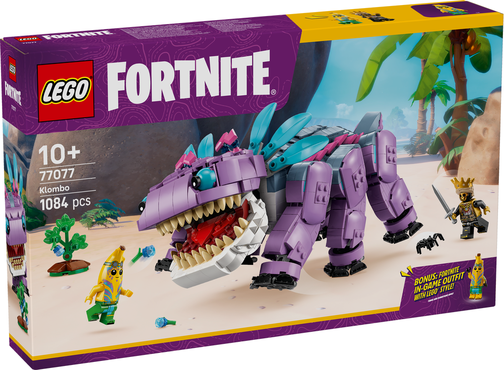 LEGO® Fortnite® Klombo (77077) ist ein Bauset für Kinder ab 10 Jahren. Fans und Gamer können den legendären LEGO Fortnite Charakter bauen und sich mit dem Monster anfreunden.