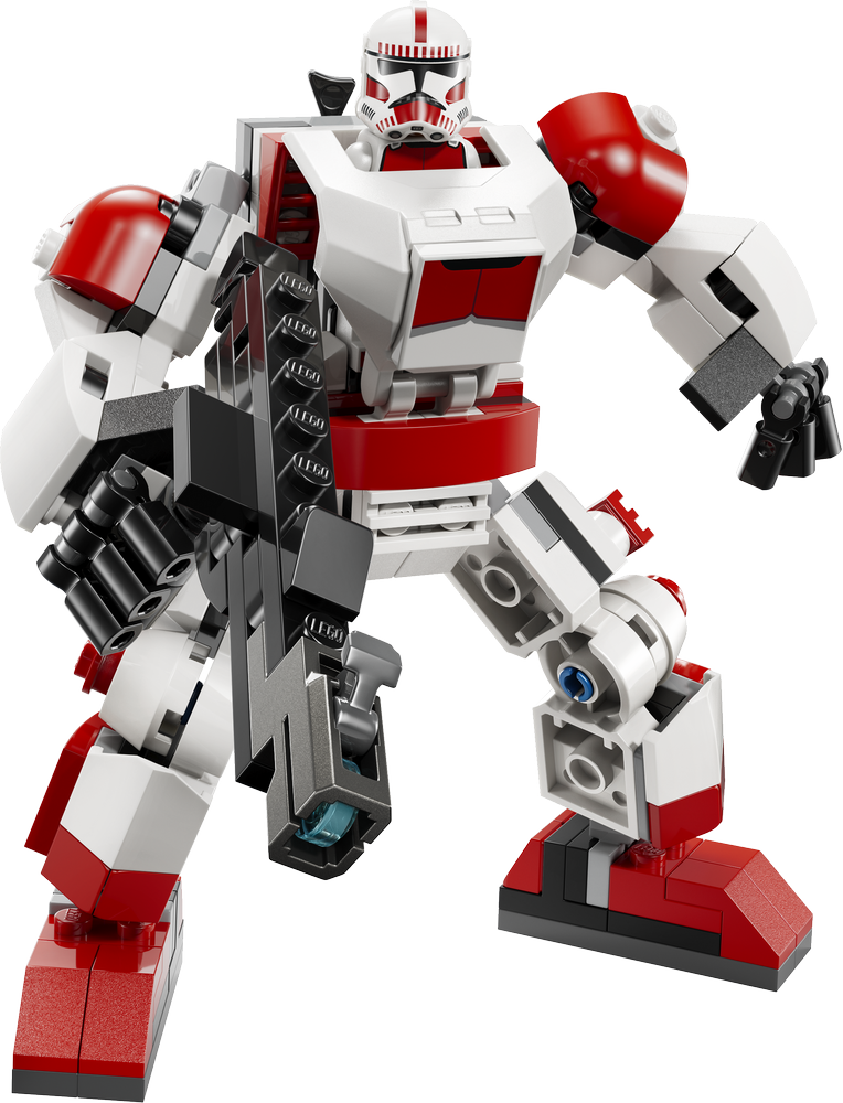 Dieser gewaltige Mech zeigt die Stärke des Galaktischen Imperiums! Setz den Clone Shock Trooper ins Cockpit und befestige sein Blastergewehr am Rücken des Mechs. Bewege die Hände, Arme, Beine und Füße, um den Mech in starke Actionposen zu bringen. Aktiviere das gewaltige Blastergewehr des Mechs. In seiner rot-weißen Rüstung ist dieser Mech jederzeit für jeden Actionspaß bereit!