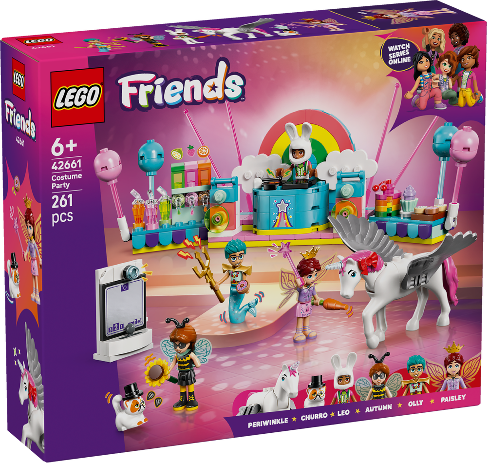 LEGO® Friends Kostümparty mit Einhorn und Fee ist ein tolles Set für Kinder. Eine Partykulisse mit DJ-Pult begeistert Mädchen und Jungen ab 6 Jahren