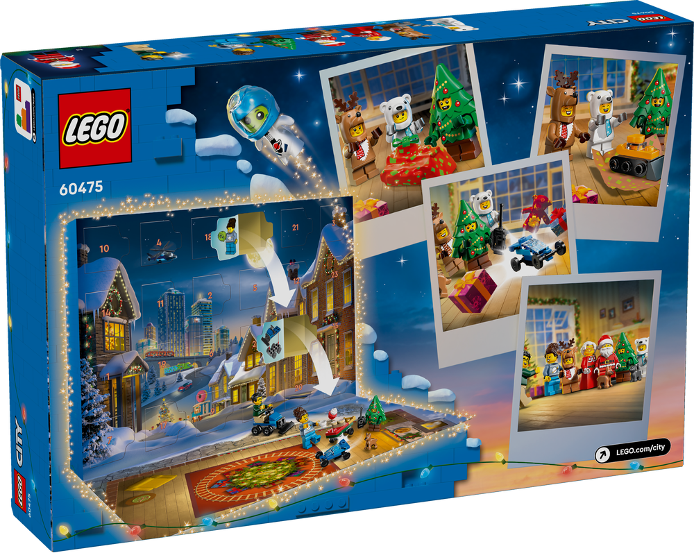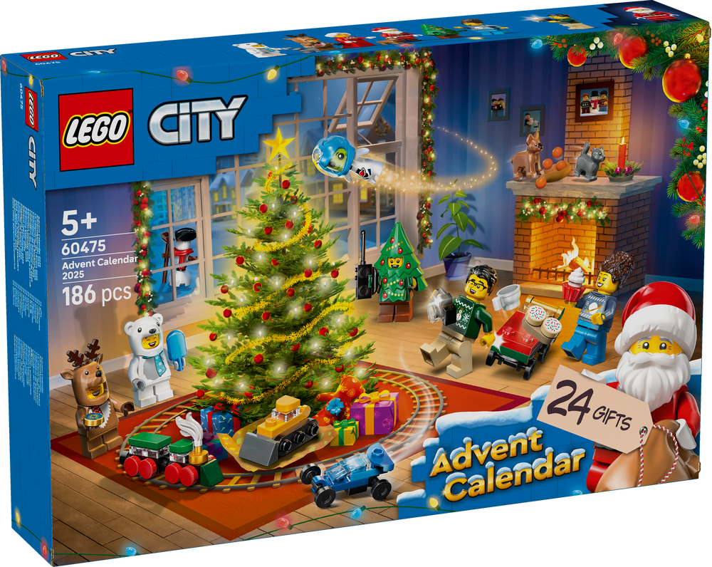 Der LEGO® City Adventskalender 2025 (60475) versüßt Kindern ab 5 Jahren das Warten auf Weihnachten. Hinter den Türchen des diesjährigen Kalenders verbergen sich Figuren, die als Eisbär, Rentier und Weihnachtsbaum verkleidet sind, sowie Zubehör und Mini-Modelle von Spielzeugen. Und klappt man die Spielmatte aus, kommt eine Weihnachtsfeierkulisse für viele fantasievolle Abenteuer zum Vorschein.