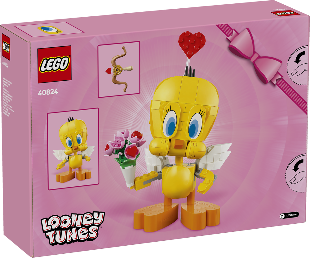 Dieses Set ist ein tolles Valentinstagsgeschenk für den Menschen, für den dein Herz schlägt. Das ist der Liebesbote Tweety (40824). Dieser superniedliche kleine Looney Tunes™ Charakter besitzt unwiderstehlichen Charme. Der süße Kanarienvogel aus diesem LEGO® Bauset kann in zwei verschiedenen Varianten ausgestellt werden, um die Liebe zu feiern.