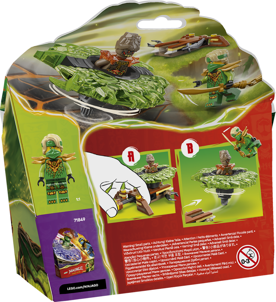 GO® NINJAGO® Lloyd vs. Erdmonster-Spinner (71850) ist ein Actionspielzeug, das Kinder ab 6 Jahren gerne bauen werden, um die Actionszenen aus der 4. Staffel der TV-Serie NINJAGO Aufstieg der Drachen nachzuspielen. Wenn das Modell fertig ist, können Kinder den Knopf am Katapult drücken, um den Spinner loswirbeln zu lassen. Trifft der Spinner auf ein Ziel, können die beiden Elementarkraftteile davonfliegen.