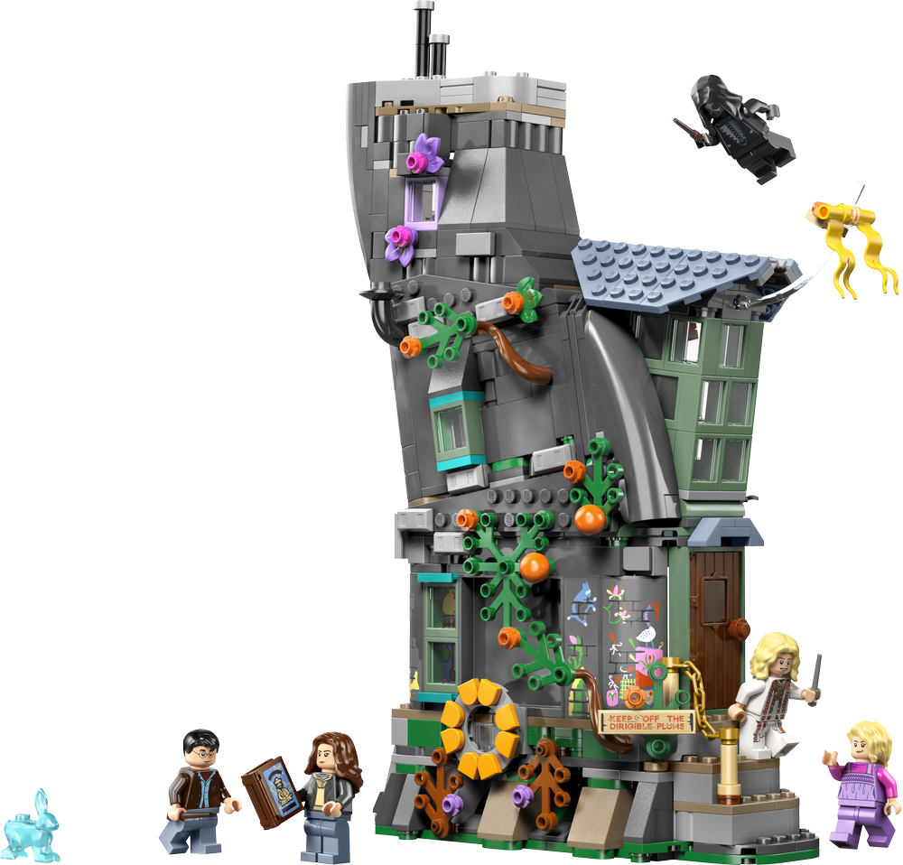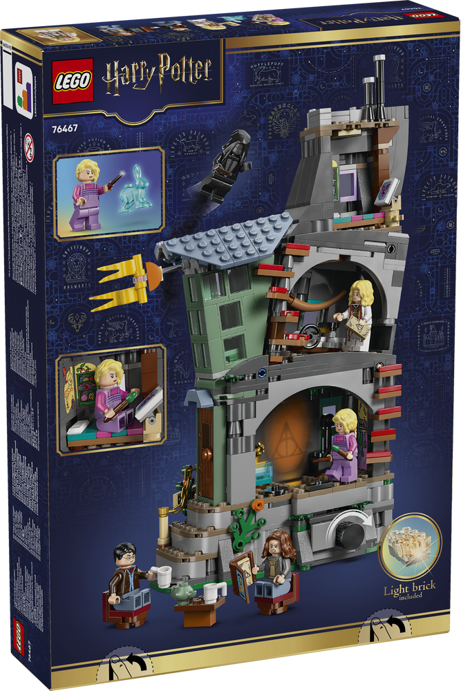 Zieh die Möbel aus der Küche heraus, um besser spielen zu können. Aktiviere den LEGO Leuchtstein, um Bilder aus Das Märchen von den drei Brüdern an die Wand zu werfen. Schau dir Lunas Zimmer und Xenophilius Lovegoods Druckerei an. Und spiele die Flucht der Helden mit dem Erumpent-Horn nach. Lunas Hasen-Patronus aus diesem Set gehört zu einer ganzen Sammlung von separat erhältlichen Patronus-Figuren zur Feier des 25-jährigen Jubiläums der LEGO Harry Potter Sets.