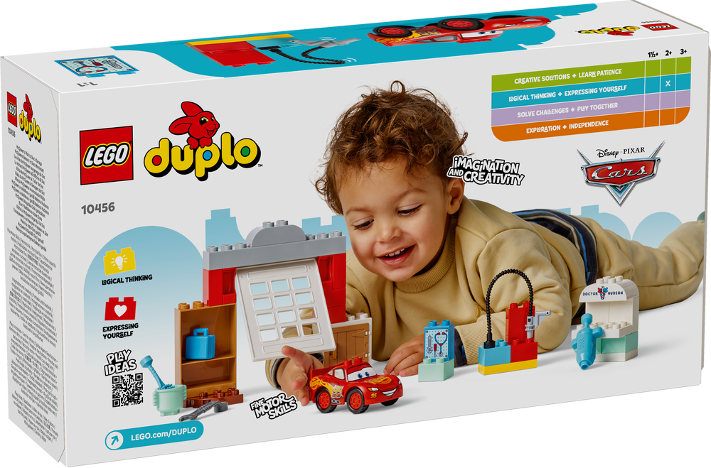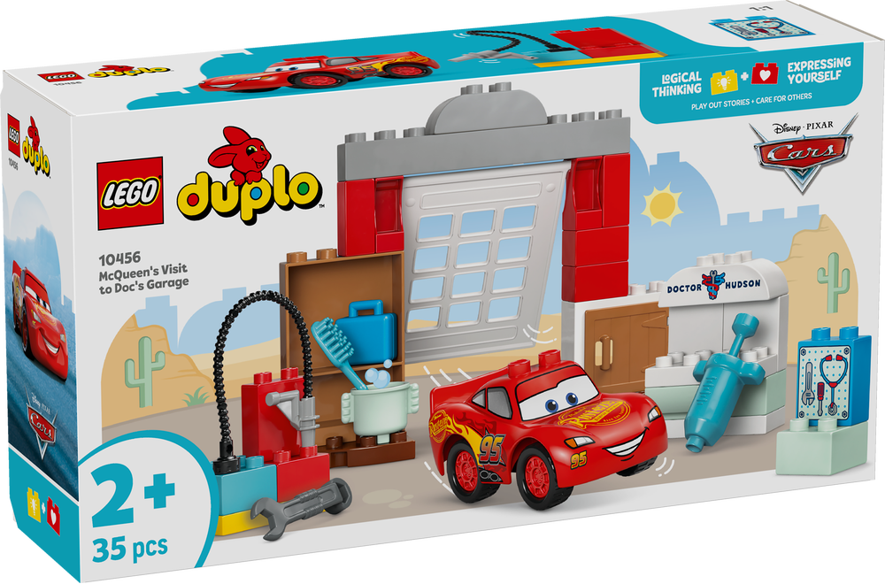 LEGO® DUPLO® │ Disney and Pixar Cars – McQueens Besuch in Docs Werkstatt (10456) ist ein Bauspielzeug, das Kleinkinder ihr Lieblingsrennauto aufmotzen lässt. Dieses Bauset versetzt Vorschulkinder in die Welt der Filmreihe Cars von Disney und Pixar. Bei dem kreativen Spielerlebnis lernen Kleinkinder Fürsorglichkeit.