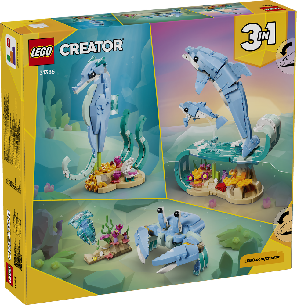 Das LEGO® Creator 3-in-1-Set Meerestiere: Wunderschöne Delfine (31385) ist ein Bauspielzeug für Mädchen und Jungen ab 9 Jahren. Das Bau- und Spielset lässt Kinder 3 verschiedene Meerestiere mit denselben LEGO Steinen bauen.