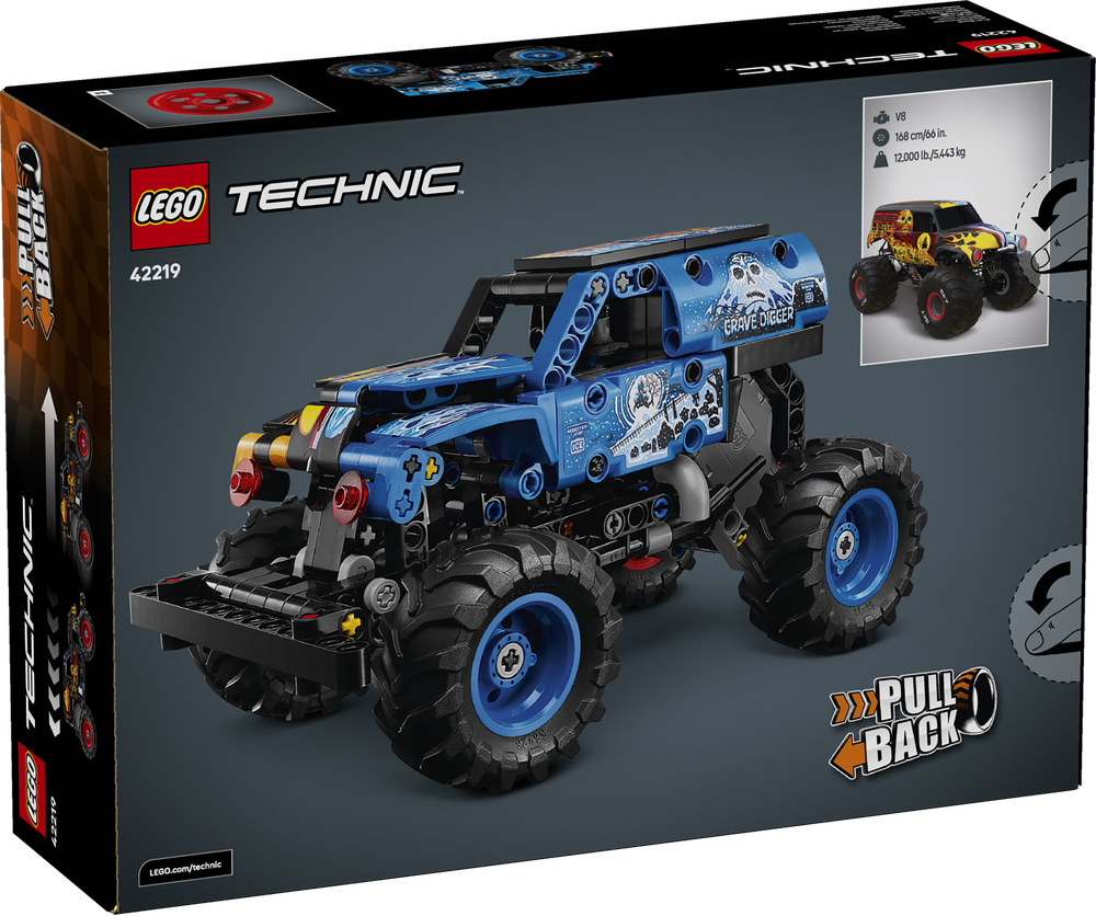 Der LEGO® Technic Monster Jam Grave Digger Feuer und Eis (42219) ist ein Monstertruck mit Rückziehmotor für Jungen und Mädchen ab 7 Jahren