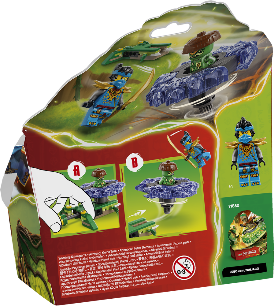 LEGO® NINJAGO® Nya vs. Mutationsmonster-Spinner (71849) ist ein Actionspielzeug, das Kinder ab 6 Jahren gerne bauen werden, um die Actionszenen aus der 4. Staffel der TV-Serie NINJAGO Aufstieg der Drachen nachzuspielen Wenn das Modell fertig ist, können Kinder den Knopf am Katapult drücken, um den Spinner loswirbeln zu lassen. Trifft der Spinner auf ein Ziel, können die beiden Elementarkraftteile davonfliegen.