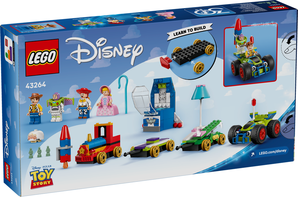 Dieses LEGO® Bauset weckt die Fantasie der Fans und lässt sie einen Festumzug zur Feier des 30-jährigen Jubiläums von Toy Story mit ihren geliebten Filmhelden darstellen