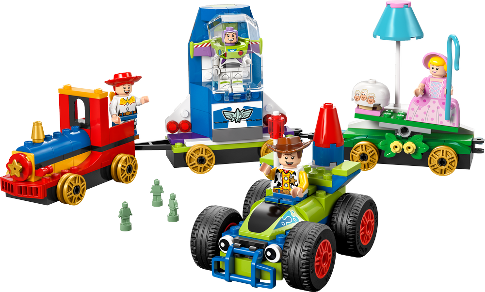 Dieses LEGO® ǀ Disney Bau- und Spielset beinhaltet eine Lok, 2 Umzugswagen und ein Auto sowie 4 LEGO ǀ Disney Minifiguren: Woody, Jessie, Porzellinchen und Buzz Lightyear