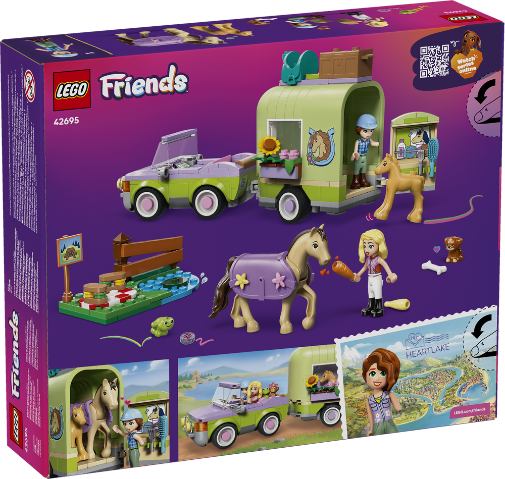 LEGO Friends Pferd und Fohlen mit Pferdeanhänger (42695) ist ein detailreiches Spielset für viele Rollenspiele. Die Spielfiguren Autumn und Matilde lassen Kinder viele Geschichten mit den Pferden darstellen
