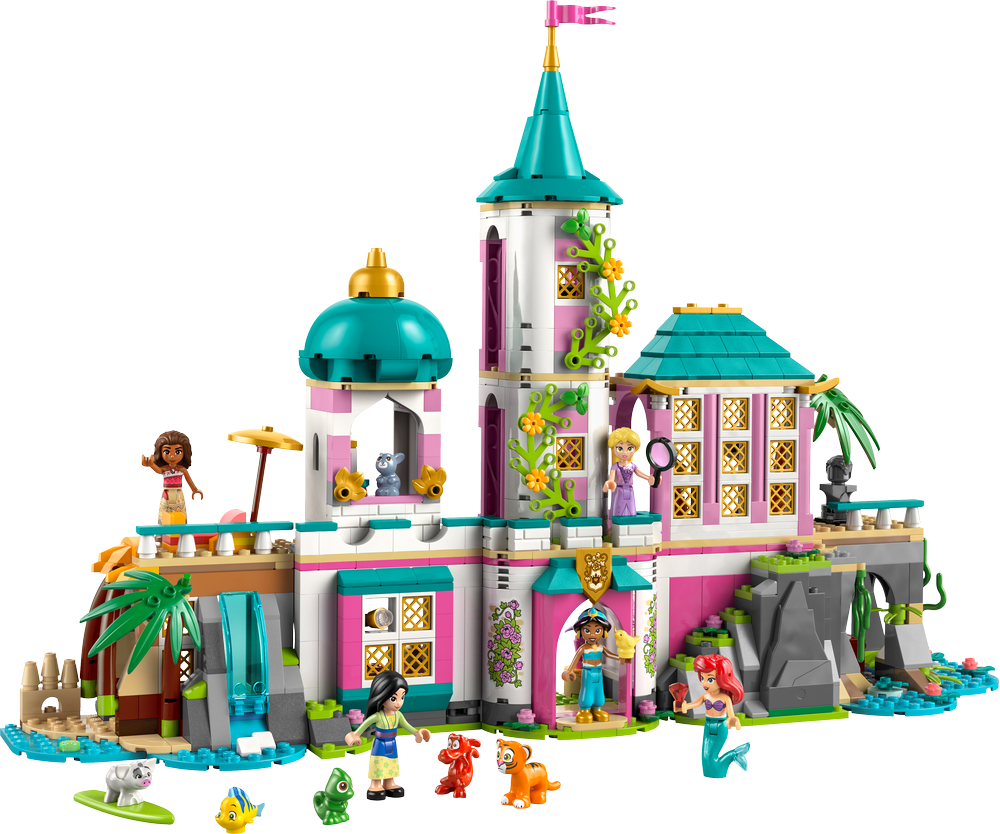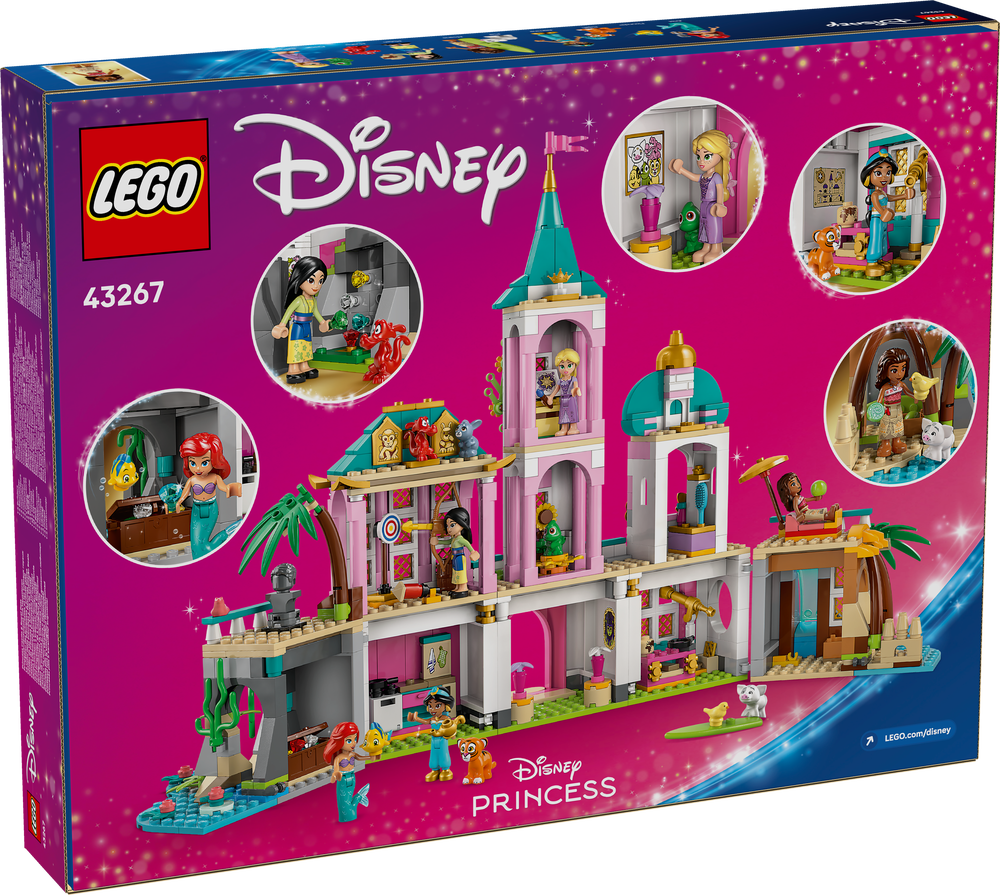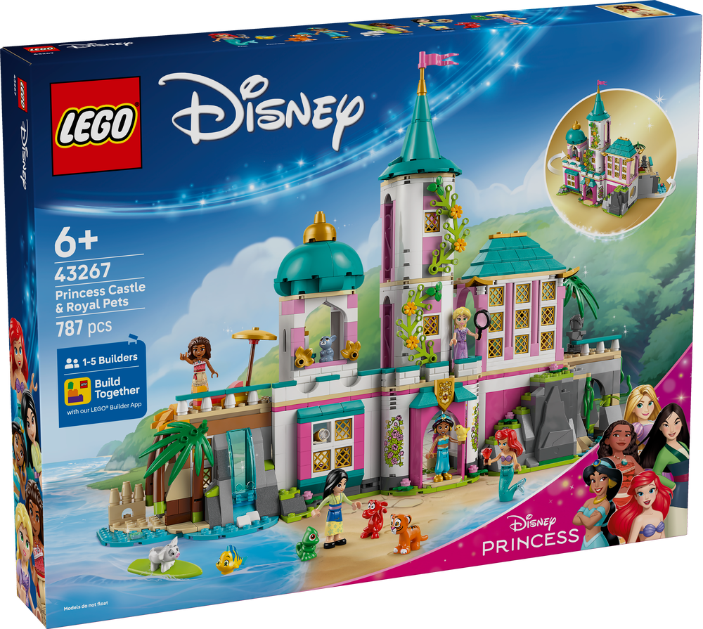 Das LEGO® ǀ Disney Prinzessinnenschloss mit Haustieren (43267) ist ein Bau- und Spielset, das Kinder und Disney Fans eine magische Welt entdecken lässt. Das Set ist eine tolle Geschenkidee für Mädchen und Jungen ab 6 Jahren. Im Schloss befinden sich Zimmer für jede der Prinzessinnen, und man kann das Gebäude zusammenklappen, um das Modell auszustellen. Viele Zubehörelemente und Funktionen laden zum Spielen ein, unter anderem ein Katapultbogen, ein Wasserfalltunnel und herausnehmbare Möbel. Zu dem Bau- und Spielset gehören auch 5 LEGO ǀ Disney Minifiguren – Arielle, Rapunzel, Mulan, Jasmin und Vaiana –, sowie 5 LEGO ǀ Disney Tierfiguren: Fabius, Pascal, Radshah, Pua und zum allerersten Mal auch Mushu.
