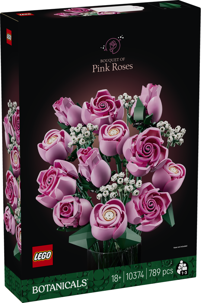 Freu dich auf ein faszinierendes Bauprojekt und steck den LEGO Strauß aus 12 rosafarbenen Rosen in unterschiedlichen Blühstadien zusammen. Entdecke 4 Rosen in voller Blüte, 4 aufgehende Rosen und 4 Rosenknospen. Verschiedene Rosaschattierungen sorgen für einen authentischen Farbverlauf. Vollendet wird das Arrangement durch 4 Schleierkrautzweige mit weißen Blüten. Man kann das Set allein oder zusammen mit anderen Fans bauen, denn es liegen 3 Bauanleitungen bei. Dieses Gemeinschaftsprojekt stärkt die Familienbande oder den Zusammenhalt unter Freunden. Stell die hübschen Blumen dann unbedingt aus.