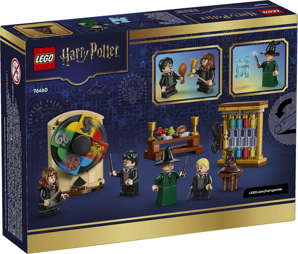 Das LEGO® Harry Potter™ Bauset (76460) lässt Kinder die Zeremonie mit dem Sprechenden Hut auf Schloss Hogwarts™ nachspielen – genau wie in Harry Potter und der Stein der Weisen. Das Harry Potter Geschenk für Jungen, Mädchen und alle Fans ab 7 Jahren beinhaltet 4 LEGO Harry Potter Minifiguren: Professor McGonagall™, Harry Potter, Hermine Granger™ und Draco Malfoy™. Setz jedem Schüler den Sprechenden Hut auf. Dreh das „Zuordnungsrad“, um zu erfahren, welchem Haus auf Schloss Hogwarts™ die Kinder zugewiesen werden. Ein Esstisch und ein Hauspunkte-Zählwerk bieten weitere Spielmöglichkeiten.