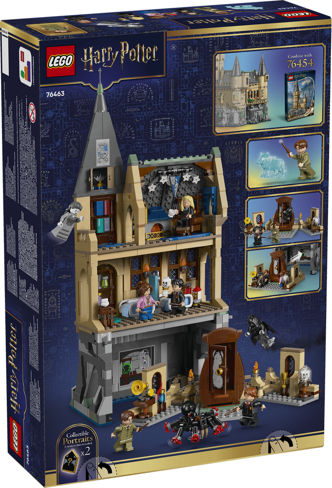 Dieses Spielset mit einem Modell von Schloss Hogwarts ist ein tolles Geschenk für Jungen, Mädchen und Fans ab 9 Jahren. 7 LEGO Harry Potter Minifiguren, darunter auch Harry Potters Dementor™, laden zum Spielen ein. Auch Ron Weasleys Spinne und Remus Lupins Wolf-Patronus dürfen nicht fehlen. Der Wolf gehört zu einer ganzen Reihe von Patronus-Figuren zum 25-jährigen Jubiläum (in separat erhältlichen Sets). Nimm das Klassenzimmer für Verteidigung gegen die dunklen Künste aus dem felsigen Fundament, um besser spielen zu können, und schau dir 2 von insgesamt 14 Hogwarts-Porträts zum Sammeln an.