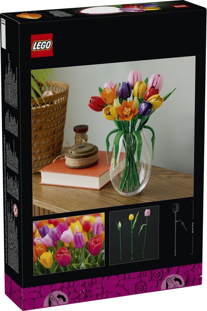 Der Tulpenstrauß ist eine schöne Aufmerksamkeit zu besonderen Anlässen wie dem Valentinstag, dem Muttertag oder einer Einweihungsparty. In der LEGO Builder App sind digitale Bauanleitungen zu diesem Bauset verfügbar, die den Blumenfans auch zeigen, wie weit sie mit ihrem Modell schon sind. Das Set besteht aus 576 Teilen.