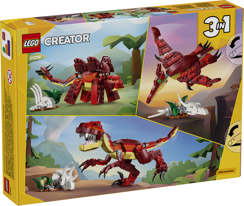 Das LEGO® Creator 3-in-1-Set Wilder Dinosaurier (31379) lässt Jungen und Mädchen ab 8 Jahren kreativ werden und 3 verschiedene Spielzeugdinosaurier mit denselben LEGO Steinen bauen
